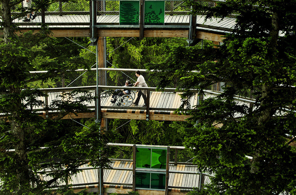 Der Baumwipfelpfad im Bayerischen Wald ist für Rollstuhlfahrer zugänglich und bietet einen einzigartigen Blick auf den Wald aus der Vogelperspektive.